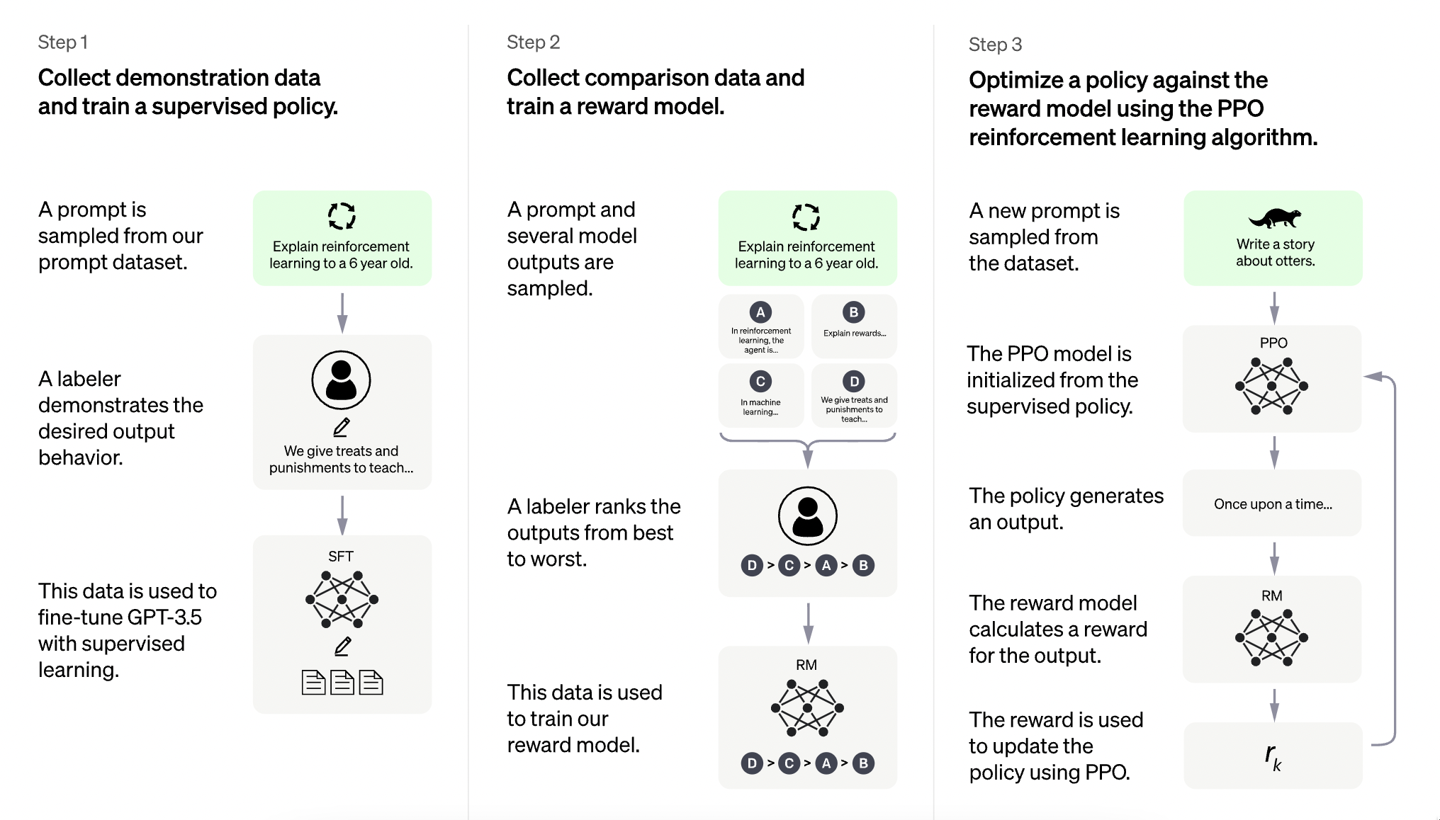 Implementation of Reinforcement Learning from Human Feedback (RLHF) from the InstructGPT paper
